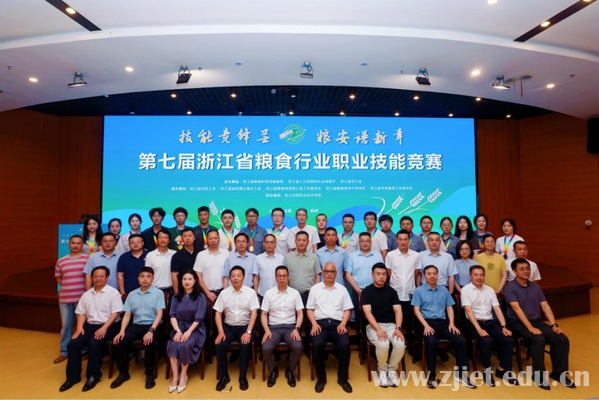 第七届浙江省粮食行业职业技能竞赛组委会主任、省粮食物资局党组书记、局长潘建漳,省财贸工会主席杨宝明、副主席宓嗣超,省部属企事业工会四级调研员张伟力,中储粮浙江分公司党委常委、总经理助理黄晓之,省农发集团有限公司党委委员、副总经理袁彤,学校党委书记劳赐铭,党委副书记许宝峰,党委委员、副校长林锋等出席颁奖仪式。